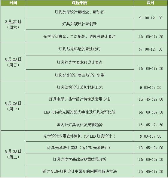 灯具设计的目的第一是为了照明,第二是为了美观,好的灯具一方面可以陶冶心情,一方面可以为环境创建更好的美观效果,同时让人心情舒畅,灯具设计将不在只是著重于功能性或技术性的提升,取而代之的是以装饰性为诉求的产品,为此,广东光亚照明研究院通过对五百家灯具企业的调查,整合行业实际需求,于2011年8月于广州举办《灯具设计与技术》专业培训班,聘请灯具设计领域权威专家担任主讲,听中央美院专家解析灯具美学新概念,从灯具美学到灯具技术应用,以国外自由开放式教学模式,讲师与学员零距离沟通,真正让学员学以致用。