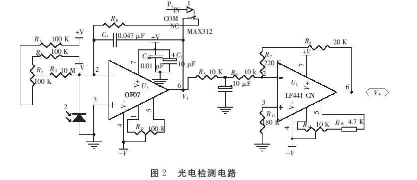 本设计中亮度测量范围为1×10-3~200×103 cd/m2,为6个数量级的跳变,单个放大器放大倍数不能满足要求,因此需要量程切换。