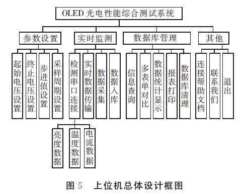 上位机软件管理系统由参数设置、实时监测、信息查询分析显示及其他辅助功能组成。
