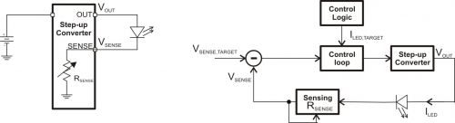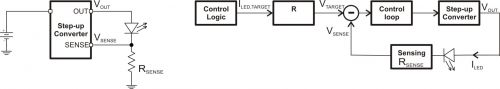 将闪光灯 LED 与一个电流检测电阻串联,然后通过一个升压转换器来驱动,这是一种简单的方法。图 1 描述了这种方法。