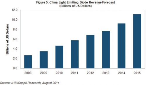 在政府支持下和新应用的带动下,2011年中国LED市场将从去年的47亿美元增长到58亿美元,上升23%。