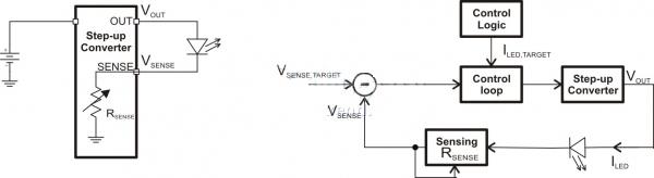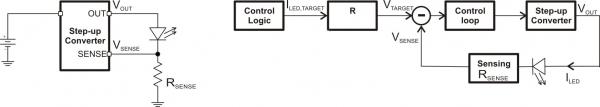 图2使用外部电流检测电阻的简单LED 驱动方法