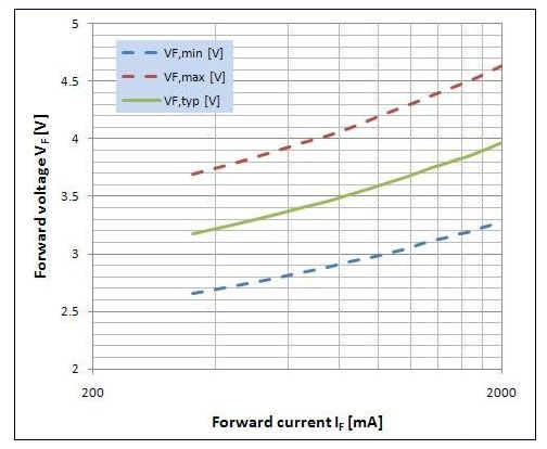 移动电话中闪光灯 LED 的高正向电压和电流以及给定的电池电压,让升压转换器成为最佳的解决方案。驱动大电流时,基于电感的升压转换器呈现出令人满意的效率。LED 必须为电流驱动,因为正向电压不仅仅随温度而变化,而且也有其自身的差异。正向电压的这种变化源自于其生产过程,其变化范围为 ±20%,请参见图 1。