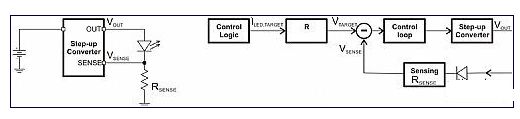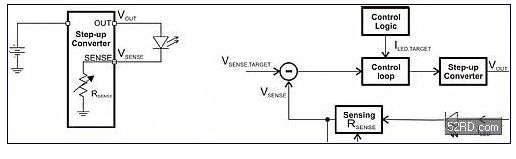 将闪光灯 LED 与一个电流检测电阻串联,然后通过一个升压转换器来驱动,这是一种简单的方法。图 1 描述了这种方法。