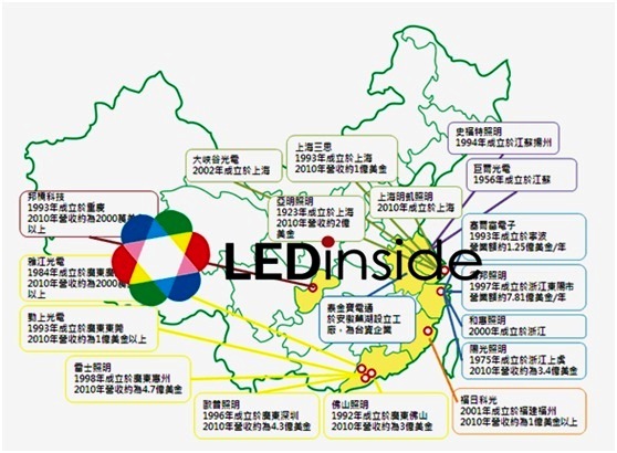 而中国照明产业持续快速稳定的成长动力,主要是来自下列两项原因;一是低廉的成本吸引大量的代工订单,中国传统照明产业自从浙江阳光集团于1984年成功开发出第一支节能萤光灯管之後,再挟带中国劳力成本低廉的优势,开始大量的吸引许多国际品牌代工订单,造就中国许多规模庞大的传统照明厂商。根据LEDinside统计,规模超过1亿美元的传统照明厂商数量不在少数。