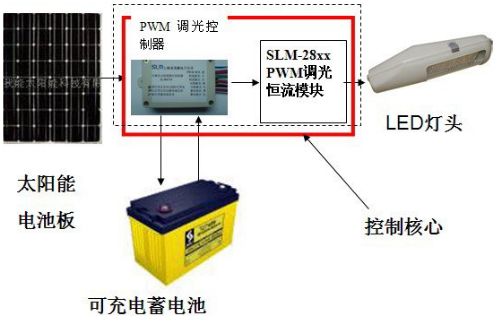 太阳能路灯的构成十分简单(图1)。从图1所示的框图中可见,其中最核心的部件,就是PWM调光控制器和恒流???。