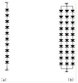 多个LED也可以采用串并联的结构,通常我们称之为几串几并。例如10串3并就是如图9b的结构。