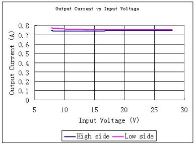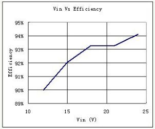 由图中可见,如果采用12V的蓄电池,它的效率就只有90%左右,而如果改用24V的蓄电池,它的效率就可以达到94%。这就可以减少芯片的功耗,降低芯片的温度,提高芯片的可靠性。