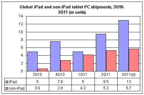 - 非iPad平板电脑第三季度销量环比仅增长10.1%