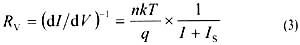 视频电阻是伏安特性曲线在原点及其附近的斜率,它反映了势垒高度的相对变化,决定着在零偏置或一定偏置条件下低电平射频到直流的功率转换效率。它可由肖特基势垒二极管的伏安特性来表示[1]
