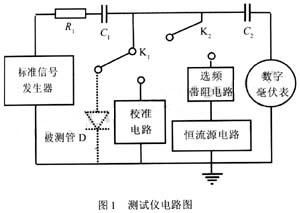 按照gb6570-86方法7.9的要求,二极管上的信号电压u应足够小,r1>>r2。故取u≤10mv,r2=10kω,[2]。