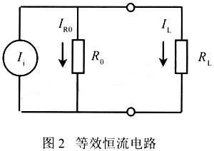 恒流源的工作原理如图2所示。它由理想电流ii和输出电阻ro组成。电流源的输出电流ii=iro+il,如果ro阻值无穷大,此时iro等于零,即负载rl在任何值时,il=ii。事实上ro不可能等于无穷大。ro越大,il越接近ii,电源的稳流性能越好[3]。