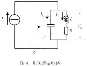 选频带阻电路由感容并联谐振回路组成[5]。图4为感容并联谐振电路,电阻r表示回路的等效损耗电阻。