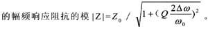 (2)谐振时,回路的等效阻抗为纯电阻性质,其值最大,既z0=l/rc=qω0l=q/ω0c,式中q=