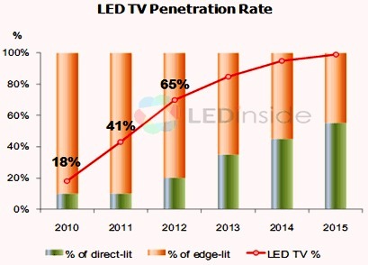 - 2012年LED背光电视(LED TV)渗透率将成长至65%