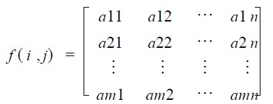假设该数组的元素为:aij , 表示某矩形区域单位面积的照度值。并假设该数组为: m ×n (即m行n 列) 。f ( i , j) 称为照度矩阵: