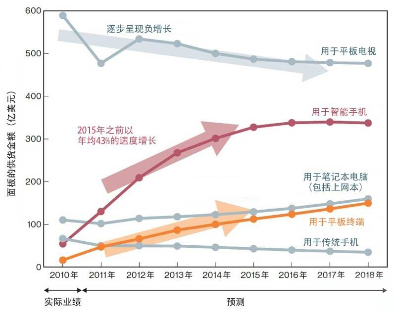 - 2015年之前智能手机面板将实现年均40%以上的增长率