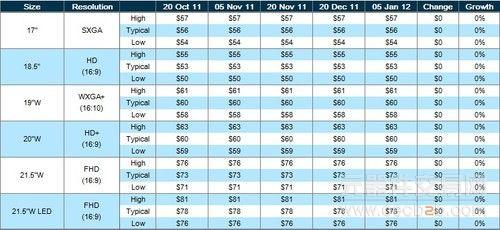 DisplaySearch公布的液晶面板报价