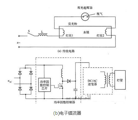 采用内置式电源的最大优点就是可以直接替换现有荧光灯而不需要对原有的接线做任何改变。那么内置式的这种优点是不是也付出一定的代价呢?的确如此,而且这个代价还不小。这要从普通荧光灯的镇流器结构说起: