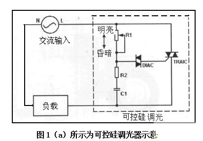 *可控硅调光器(见图1(a)所示)。它是应用切相原理,减少VRMS来降低普通负载(电阻负载)的功率,工作效率较高性能稳定。