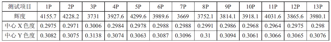 本文所设计的笔记本电脑用LED 背光组件光源采用白光LED,组装后的LED 背光源利用BM- 7 进行13 点测试,5 点平均辉度为4,019nit ,亮度均齐性为85.33% ,色彩还原性达到95% @CIE 1976.背光源整体功率为3.2W,其中LED 功耗为2.69W.背光系统的驱动电路简单,电流一致性良好。表1 所示为背光源的光学测试数据。