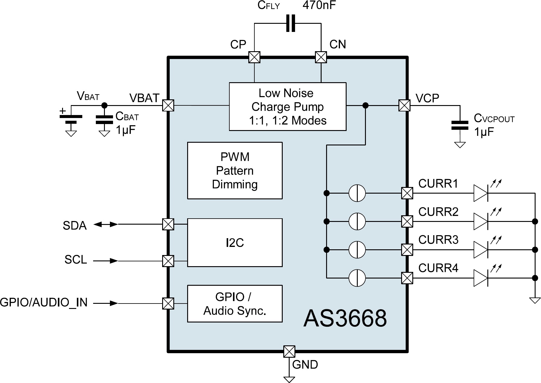 AS3668智能LED驱动芯片采用微型的1.26mm x 1.68mm 12-pin WL-CSP封装,现已量产供货。