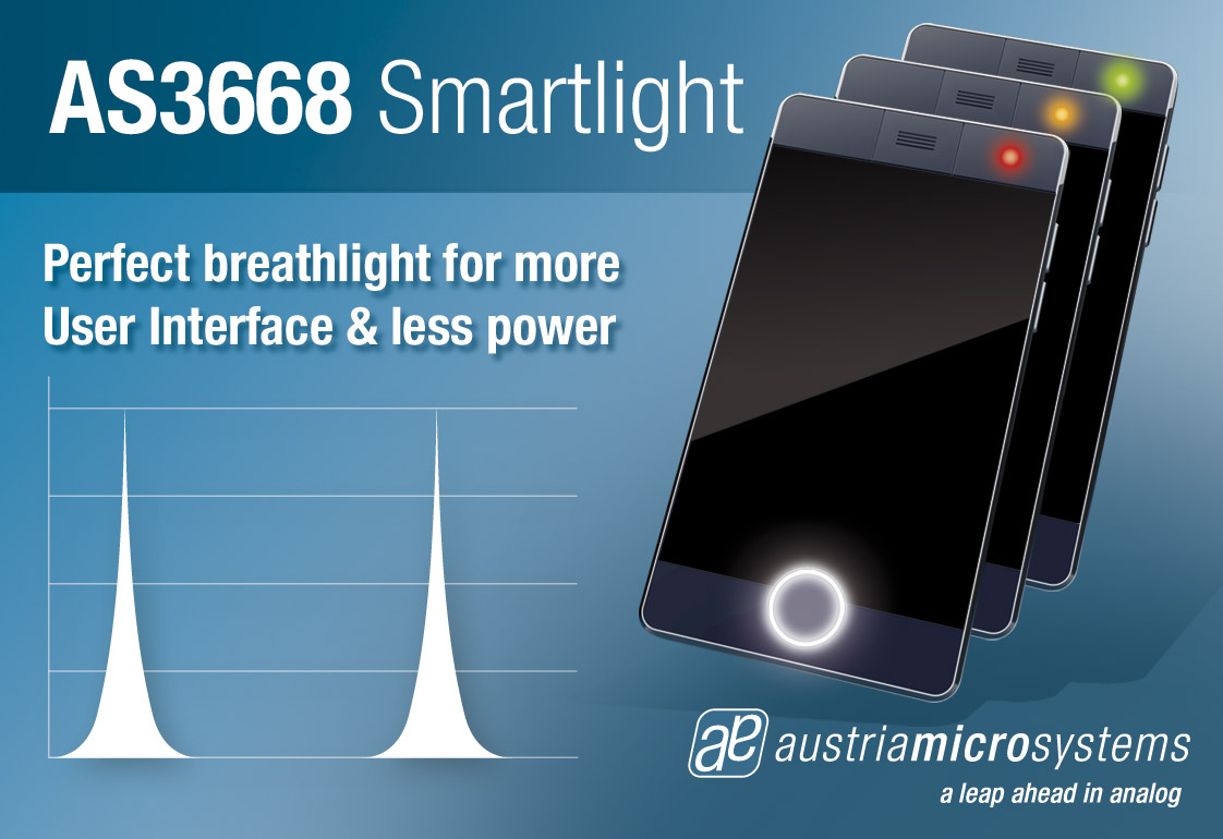 全球领先的高性能模拟IC设计者及制造商奥地利微电子公司(SIX股票代码:AMS)宣布推出新款智能LED驱动芯片AS3668。新品最多可控制4个LED,为手机和平板电脑带来精致的指示灯光效,且无需动用耗电显著的基带处理器。