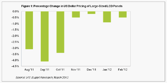 即便如此,IHS公司认为,考虑过去几个月液晶面板产业既有正面消息有也负面消息,大尺寸液晶面板价格保持相对稳定也是难能可贵的。