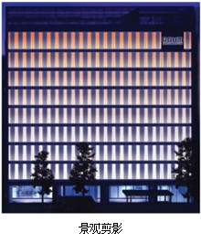 于2010年整体焕然一新的罗姆日本京都站前大楼景观灯,整座大楼采用罗姆自产的LED照明等产品。大楼正面的墙面纵横组合安装了罗姆生产的全彩LED和可进行色温微细调整的LED???,实现了如同透过纸窗一样的柔和光线。该设计根据季节对色温进行微妙的调整,表达了日本细腻的季节感,与京都街道风格融为一体。
