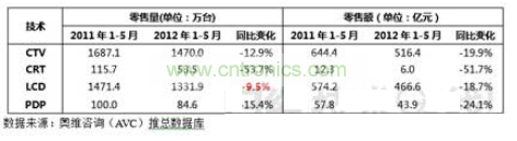 图1 2012年1-5月中国彩电市场销量与销售额