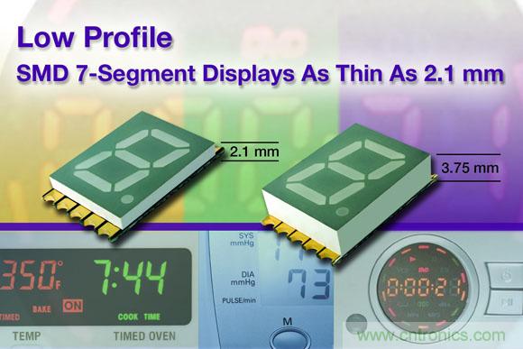 日前,Vishay宣布发布采用小尺寸、低高度封装的两新系列10mm标准表面贴装7段LED数码管--VDMx10x0和VDMx10A1系列,这两款数码管在GaAs芯片技术基础上使用了AllnGap材料,使发光强度达到2750μcd典型值,有大红色、浅橙色、黄色和绿色,可用于多种应用。