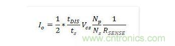 在二极管导通时间期间,输出电压与二极管正向压降之和反射到辅助绕组为(VO+VF)*Na/Ns。通过在二极管导通时间结束时对绕组电压进行采样,可以获得输出电压信息。输出电流(Io)可使用MOSFET的峰值漏极电流(Ipk)以及电感电流的放电时间(tDIS)来估算,因为在稳态下,输出电流(Io)与二极管电流(ID)的平均值相同。输出电流估算通过峰值检测电路来确定漏极电流的峰值,并利用电感放电时间和开关周期(ts)来计算输出电流。将此输出信息与内部精确参考电压进行比较,产生误差电压(VCOMI),它可以确定MOSFET的占空比。使用Fairchild的创新TRUECURRENT技术,可精确控制恒定输出电流。