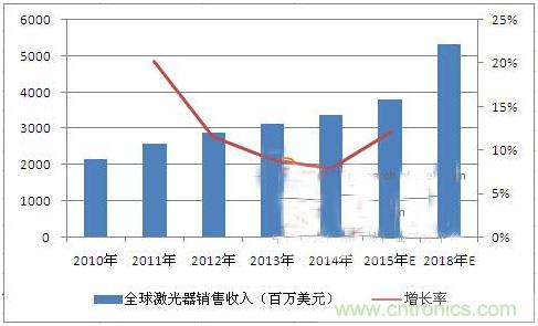 2012年,激光器从科学创新到工业"工具"取得进展,并认为现在是时候考虑开拓一些新型应用领域了,这些新兴领域可能改善激光器市场长久以来"缓慢而稳定"的5%--6%年复合平均增长率(CAGR),使其以两位数速度增长。