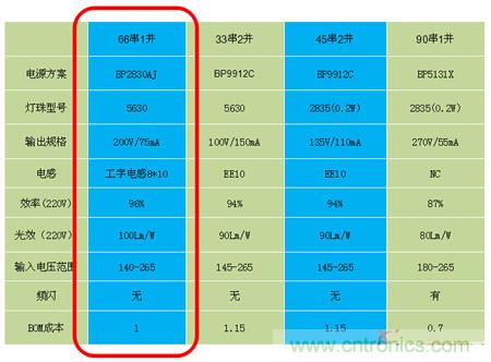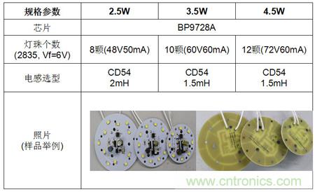 从上图各种参数对比我们可以看出,单从成本来看,一定是线性方案最低,但同时会存在一些问题,比如光效,效率并不是很理想,最关键的一点,线性方案温度较高,因为铝基板温度高而造成的硫化而存在一定的风险。所以,从整体参数对比来看,66串1并的方案是性价比最高的。同理,8W T管方案推荐的是单串1并BP9918B的方案,单片集成工艺,集成启动电阻,极简的外围电路,系统成本极具竞争力,其中值的一提的是该方案采用了CD54电感,可将BOM成本可以做到大概在0.85左右,且可以实现全贴片的方案,从而帮助客户降低人工成本。