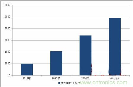 图表4 2012-2015年中国FTTH用户增长情况(单位:万户)