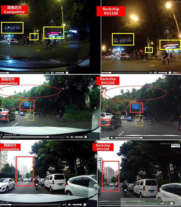 CES2017,瑞芯微Rockchip公布了三段基于RV1108视觉处理芯片平台与同类解决方案的对比视频。在夜视、逆光、清晰度多情境下,凸显出RV1108图像处理在“宽动态”上的画质优势。