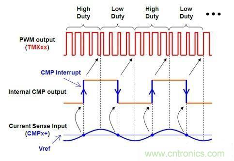 d. 比较器/外部中断能实现硬件的禁止输出功能,反应快速,保证安全