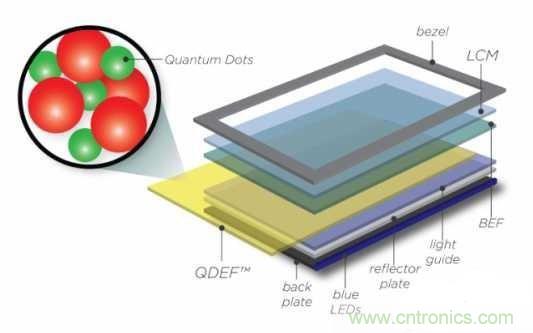同时,QDEF膜和蓝光LED光源的应用也是量子点显示器色彩显示比普通显示器更纯净的原因之一。