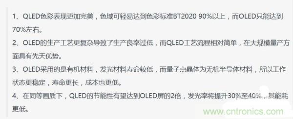 其中很大一部分来源是因为材料需要阻水氧,量子点因为是无机物,所以在宣传上宣称自己比OLED稳定,但事实上纳米尺寸的量子点很敏感,不只跟荧光粉一样怕热,还和OLED一样怕水氧,大肆宣传自己比OLED稳定,实在是没有这样的资本。