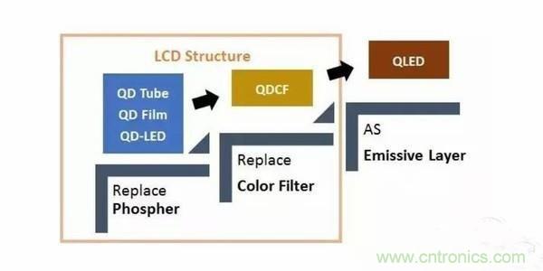 大致可以分为三个阶段:一、取代传统的发光荧光粉;二、去掉彩色滤光片;三正式成为发光层(也就是目前OLED的像素点自发光的形式)