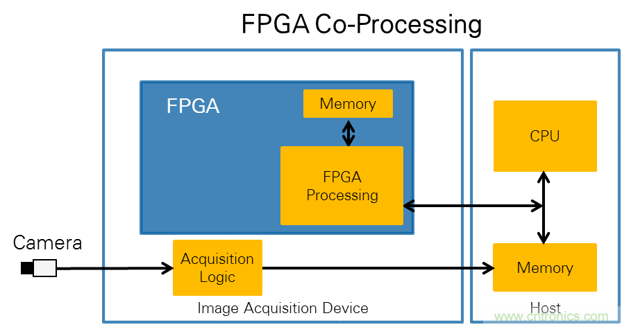 图1.在FPGA协处理中,图像使用CPU进行采集后,通过DMA发送到FPGA,然后由FPGA对图像进行处理。
