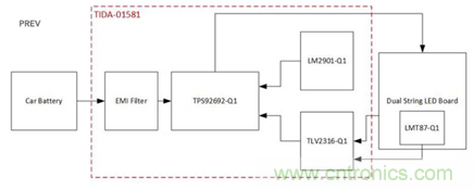 图示1-大联大世平推出基于TI产品的车辆日间行车灯LED驱动器参考设计系统架构图