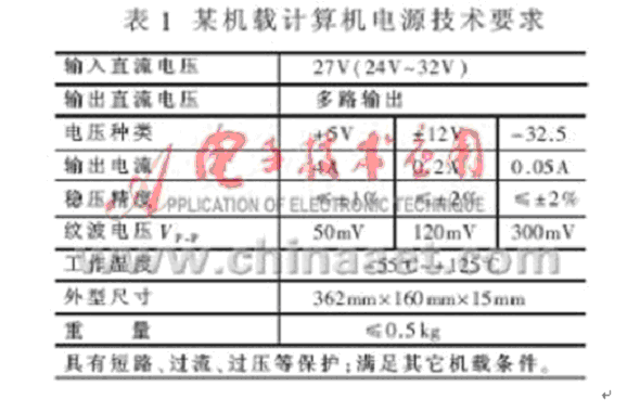 小体积、轻重量、高可靠性、高效率是航空电源始终追求的目标。随着微电子技术的发展,采用大规模和超大规模集成电路的机载计算机主机已越来越小型化,这就对其电源部件的体积和重量提出了进一步小型化的要求?;丶扑慊且恢挚苟窳踊肪车募扑慊?其电源部件也必须满足抗恶劣环境的要求,例如必须适应-55℃~+125℃的环境温度和较宽范围的输入电压;同时还要耐振动、耐撞击、抗电磁干扰等。