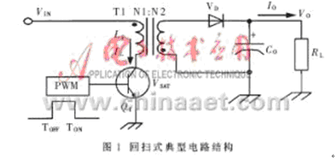 回扫式拓扑电路结构无疑是目前比较理想的多路供电电源电路结构。其峰值电感电流可检测、输出电压扩展性强等特点,极大地提高了控制电路的稳定性和抗干扰能力,便于供电电源的设计。