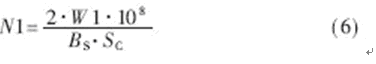 其中,BS为磁感应强度,SC为脉冲变压器磁芯有效截面积:BS=104Gs,SC=0.847cm2。则由(6)式可知: