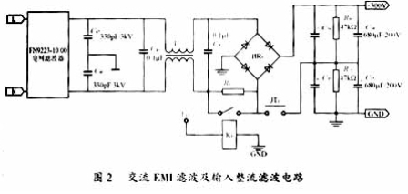 交流EMI滤波及整流滤波电路如图2所示。