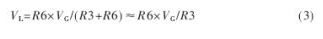 图3中VF≈1V,施密特比较器的两个比较点电压分别为VH和VL,由式(2)和式(3)决定。