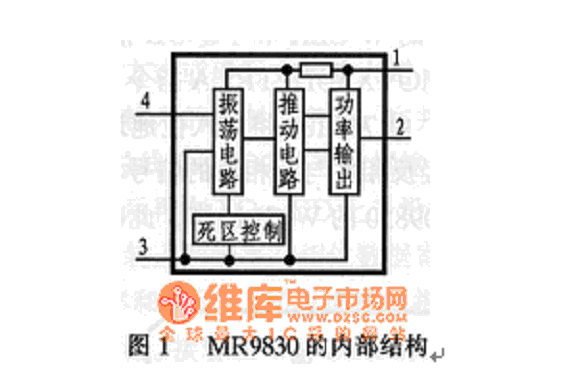 MR9830是一种集振荡、推动和功率输出于一体的厚膜电路???。它所需的外围元件极少,制作电子镇流器十分方便,而且工作可*、价格低廉。MR9830内部由振荡电路、占空比及死区控制电路、推动电路和半桥功率输出电路等组成,其内部结构框图如图1所示。
