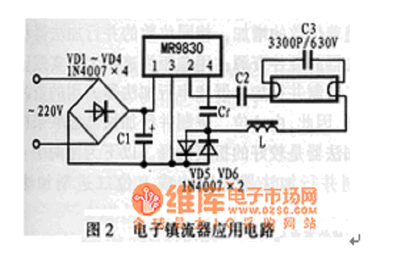 MR9830可用作日光灯和节能灯的电子镇流器。具体电路如图2所示。