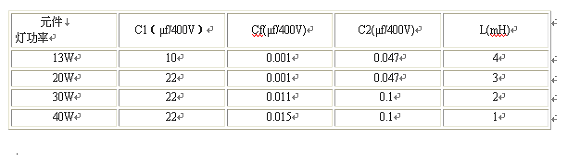 用MR9830组装的电子镇流器能可*地驱动40W以下功率的各种日光灯和节能灯。而且体积小,效率高,故障率极低,组装工艺也非常简单。图2中的C1、C2、及Cf和电感L的参数可根据需推动日光灯管、节能灯管的功率不同而不同,具体的参数设置可参见表1。